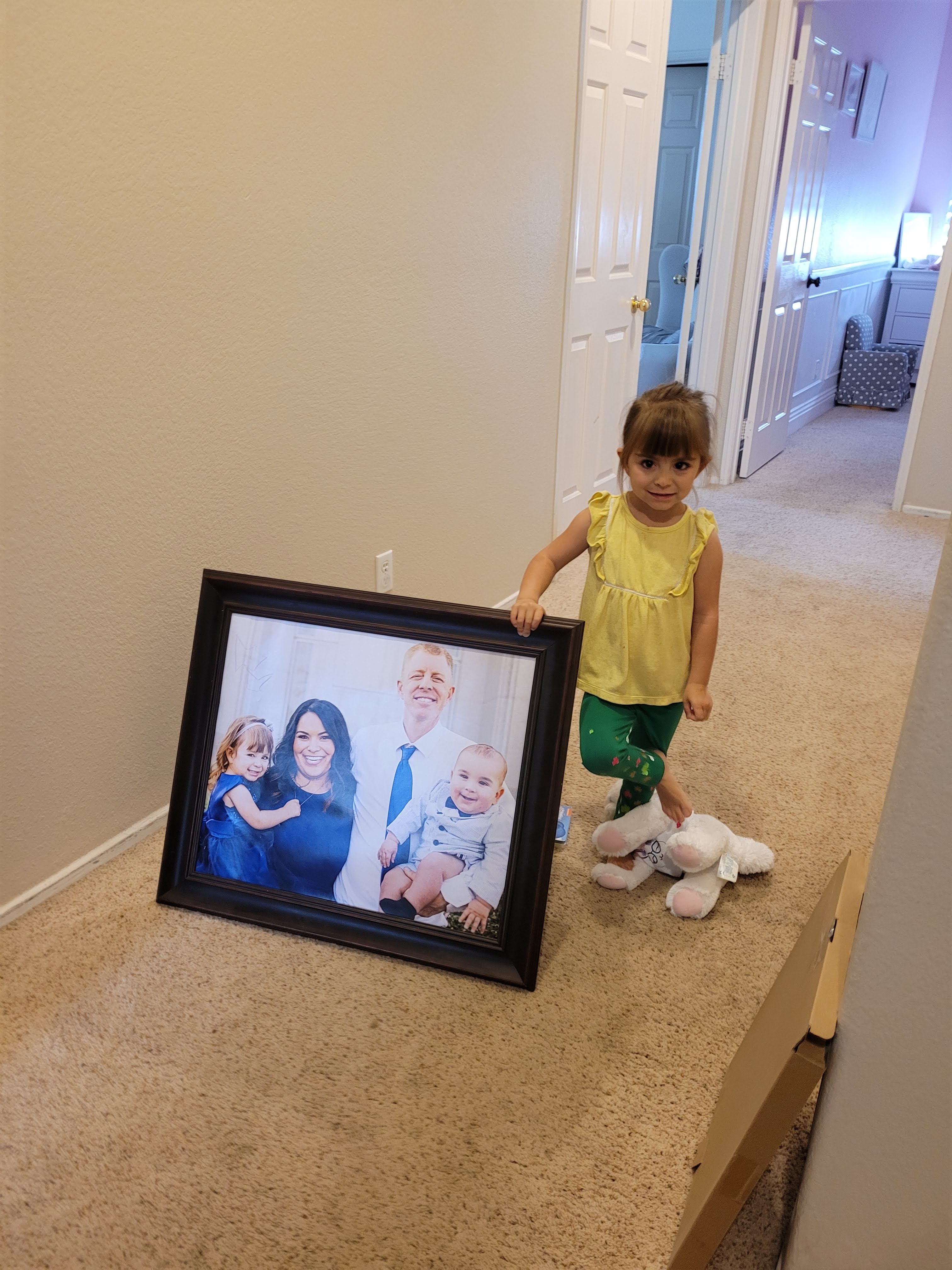Lilah wanted to pose with our family picture. She is too funny sometimes.