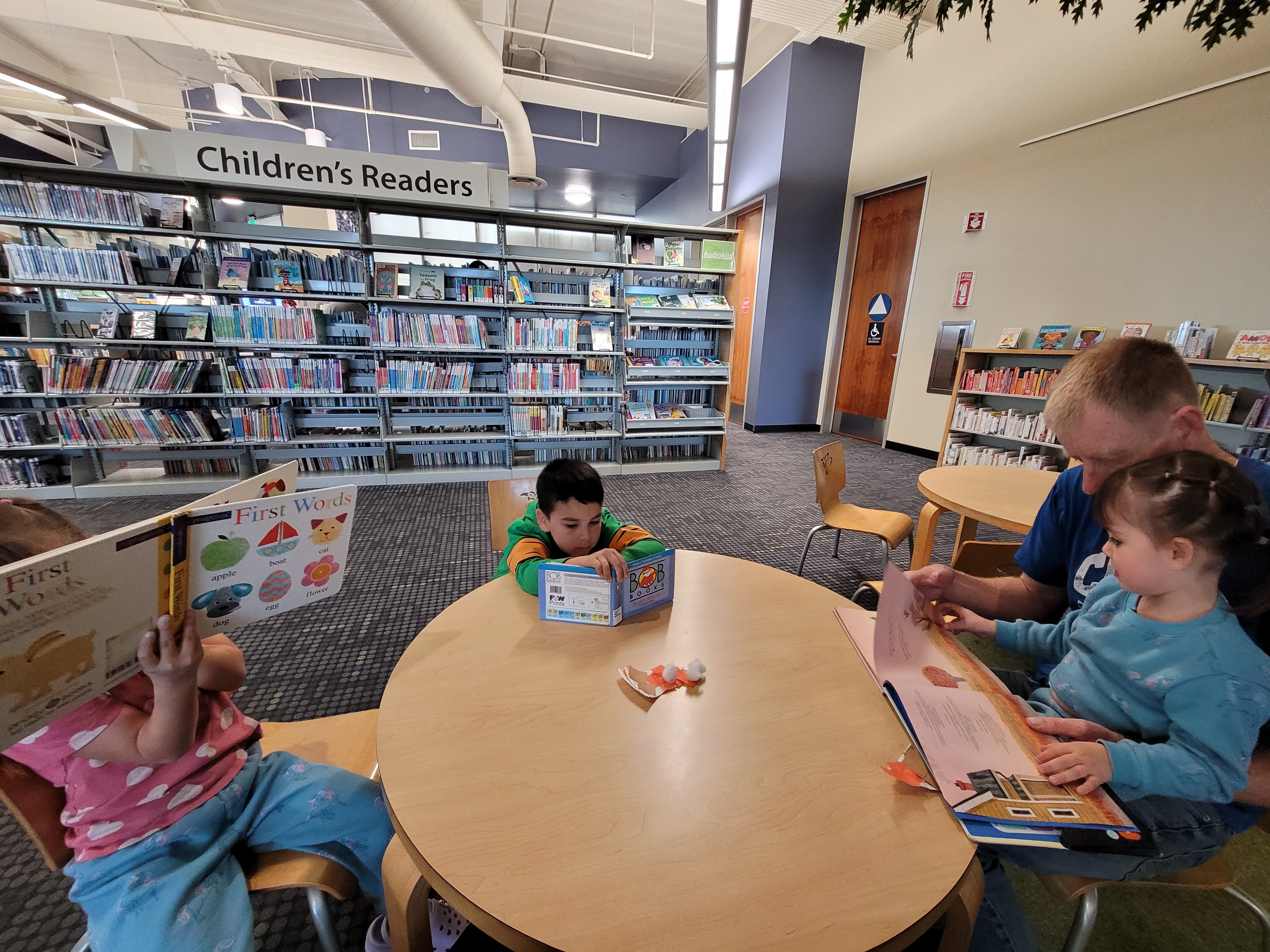 Annie is still home right now so she gets to go with me to David's school. David had Family reading day.